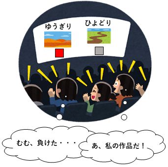 - 司会の合図で写真を1対1で出し、ジャッジが判定して講評する
